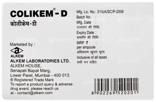 Colikem D Injection 2 ML is widely used to relieve abdominal pain and cramps. It belongs to the class of antispasmodic medications, known for their ability to relax muscles and alleviate spasms.