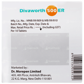 Divaworth 500 Er Tablet 10 is used to manage epilepsy and bipolar disorder. It helps stabilise mood, prevent seizures, and balance brain chemicals, thereby reducing mood swings and maintaining regular nerve activity.