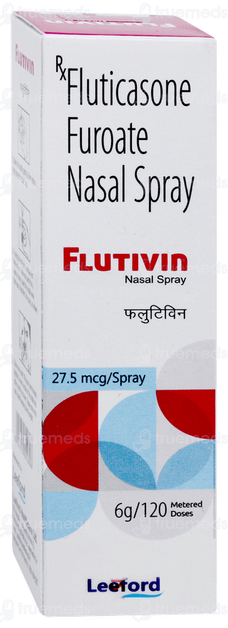 Flutivin Nasal Spray 6gm is used to relieve allergy-related nasal symptoms such as sneezing, runny or blocked nose, and sinus discomfort. The corticosteroid (fluticasone furoate) works by reducing inflammation in the nasal passages, providing effective relief from allergic rhinitis.