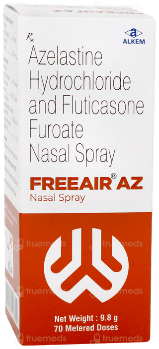 Freeair Az Nasal Spray 9.8gm is an effective solution for managing symptoms of seasonal and perennial allergic rhinitis. Combining antihistamines and corticosteroids, it helps reduce inflammation and provides relief from nasal congestion, sneezing, itching, and a runny nose due to allergies.