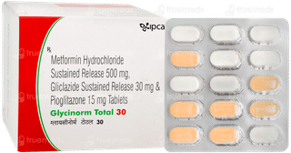 Glycinorm Total 30 Tablet 15 is used to manage type 2 diabetes mellitus in adults when diet and exercise alone are not enough to control blood sugar levels. It is a combination medicine belonging to the class of oral anti-diabetic medicines.