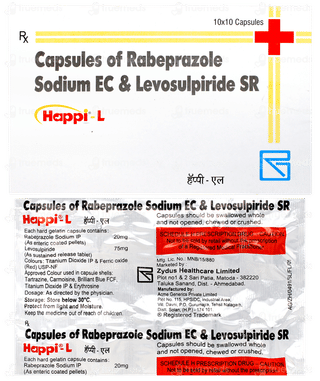 Happi L Capsule 10 is used to treat Gastroesophageal Reflux Disease (GERD), peptic ulcers, and Irritable Bowel Syndrome (IBS). This combination uses rabeprazole (PPI) and levosulpiride (prokinetic). Rabeprazole reduces acid production, and levosulpiride improves gut motility. This effectively alleviates symptoms like heartburn, bloating, and indigestion, and reduces sleep disturbances.