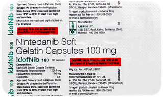 Idofnib 100 Capsule 10 is used for managing idiopathic pulmonary fibrosis (IPF), a condition where the lung tissue becomes scarred, making breathing difficult. As a tyrosine kinase inhibitor, it slows the progression of fibrosis, helping to preserve lung function. This capsule is also used for managing other interstitial lung diseases and advanced non-small cell lung cancer. Always take it with food, as directed by your doctor, and inform them of any other health issues. Continue taking the medication for the full prescribed duration for optimal results.