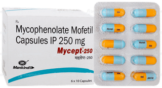 Mycept 250 Capsule 10 is used to prevent organ rejection in patients who have undergone kidney, heart, or liver transplants. It belongs to a class of medications known as immunosuppressants, which work by decreasing your body's immune response to the transplanted organ.