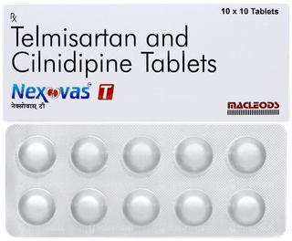 Nexovas T Tablet is used to treat high blood pressure (hypertension) and chest pain (angina). Its combination of Cilnidipine and Telmisartan relaxes blood vessels, improves heart function, and reduces the risk of heart attack, stroke, and kidney damage.