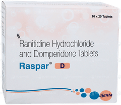Raspar D Tablet 20 is commonly used to manage gastroesophageal reflux disease (GERD) and peptic ulcer disease. This combination medicine falls under the class of digestive system medications.