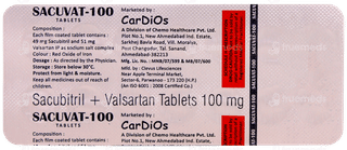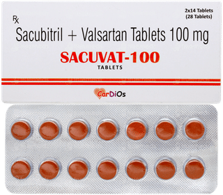 Sacuvat 100 Tabelt 14 is used to manage chronic heart failure in adults. It works by improving the heart's ability to pump blood efficiently, helping to reduce the risk of hospitalization and cardiovascular death. This combination medicine includes sacubitril, which helps relax blood vessels, and valsartan, which prevents blood vessel constriction, thereby lowering blood pressure. Together, they help manage the symptoms of heart failure, including shortness of breath, swelling, and fatigue.
