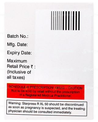 Starpress R XL 50 Tablet is used to manage high blood pressure (hypertension). This combination antihypertensive helps relax blood vessels, lower blood pressure, and reduce strain on the heart for improved cardiovascular health. This medicine is a combination of two active ingredients and belongs to a class of medications known as antihypertensives.