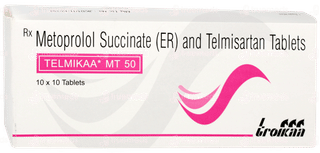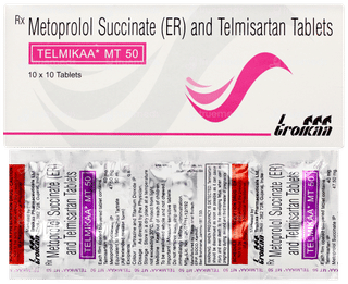 Telmikaa Mt 50 Tablet 10 is used to manage high blood pressure (hypertension). It combines two active ingredients that help relax blood vessels to lower blood pressure.
