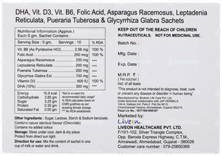 Feedbibz Sachet 5 gm is used for improving lactation in women. It is a scientifically designed supplement that focuses on supporting lactation in breastfeeding mothers. By combining a unique blend of natural ingredients like Shatavari, Jivanti, Vidarikand, Jethimadh and essential vitamins, Feedbibz works to enhance milk production, address lactation failure and provide essential nourishment to both the mother and baby. This supplement ensures that new mothers can maintain a healthy and fulfilling breastfeeding experience by boosting their milk supply naturally. Additionally, Feedbibz Sachet is free from gluten, artificial colours, and flavours, making it a safe, wholesome option for nursing mothers.
