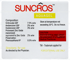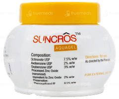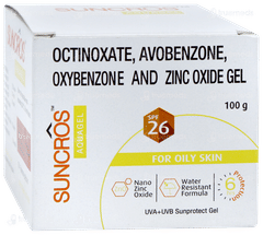 Suncros Aqua Gel SPF 26 is a lightweight, non-greasy sunscreen formulated with Avobenzone, Octinoxate, Oxybenzone, and Zinc Oxide. It provides broad-spectrum protection against UVA and UVB rays, managing sunburn, tanning, and premature ageing. Its water-resistant formula ensures up to 6 hours of protection, making it ideal for oily and acne-prone skin types.